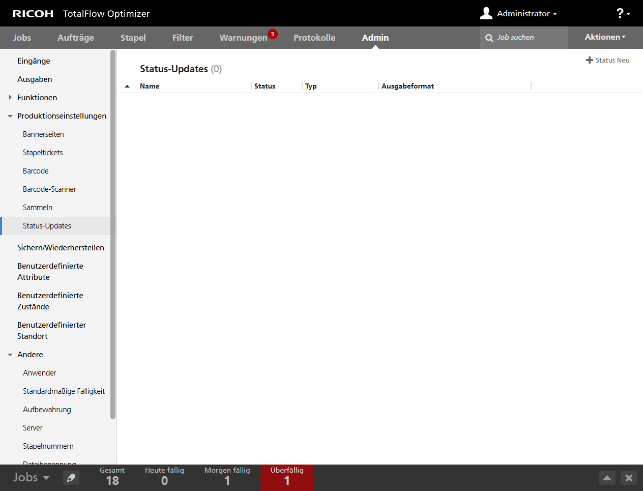 Wählen Sie den Typ der neuen Statusaktualisierung aus: Aufträge, Jobs oder Stapel.